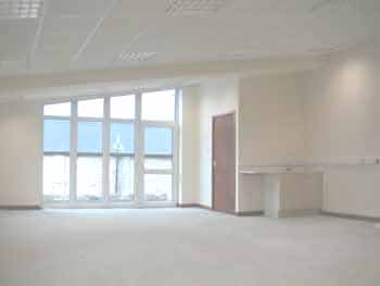 open plan office with a light airy entrance. It has power, BT sockets etc.